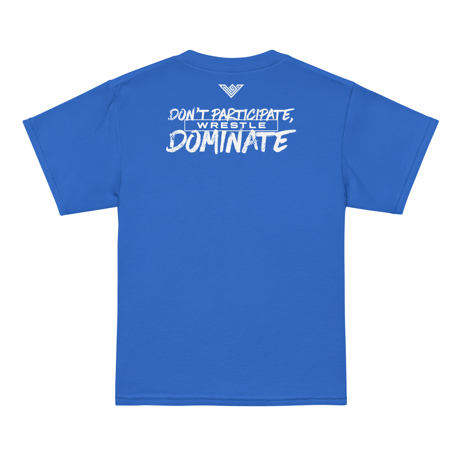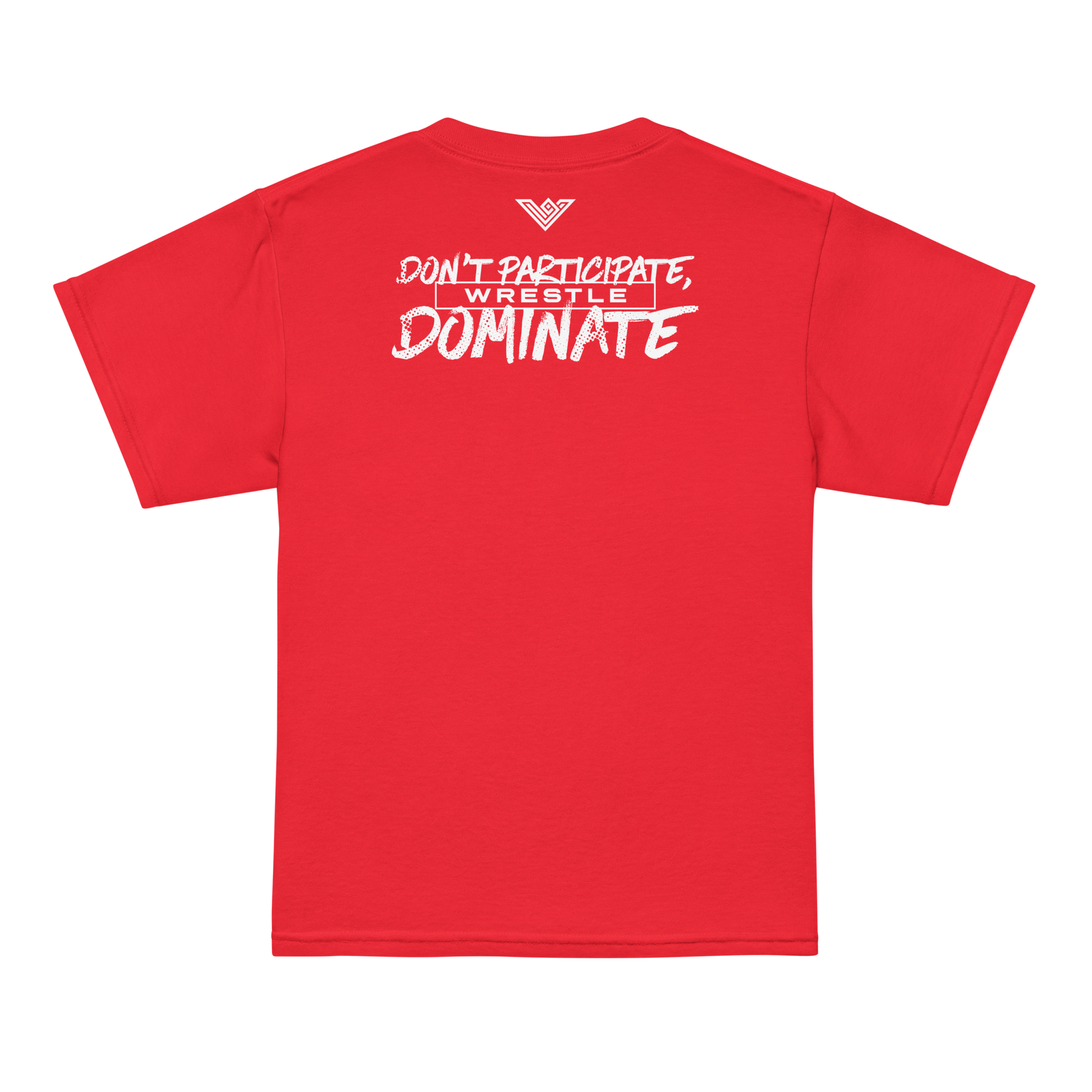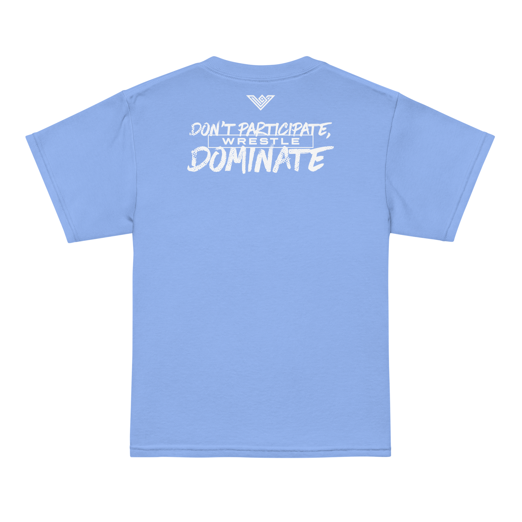 For young wrestlers who train to win, the Vortus -Don't Participate - Dominate shirt pairs commanding motivation with everyday comfort. Designed for practice, warmups, and casual wear, it reinforces a champion mindset while staying soft and durable.