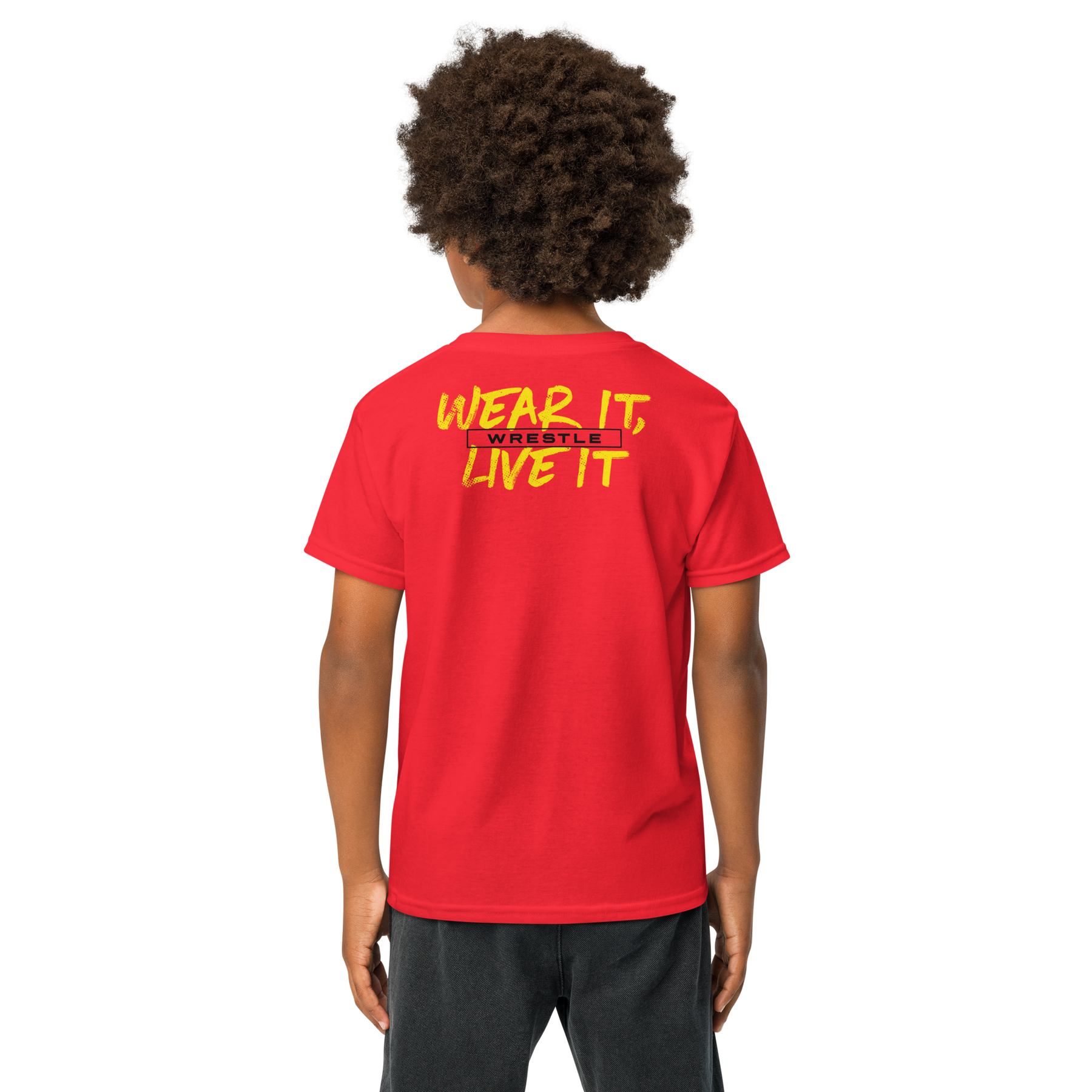 A must buy for your rising star of the mat. This lightweight and incredibly soft tee is more than just a shirt; it's a statement of ambition and skill for any young wrestler. Featuring a unique and bold design, it helps your child stand out with style and confidence, both on and off the mat.