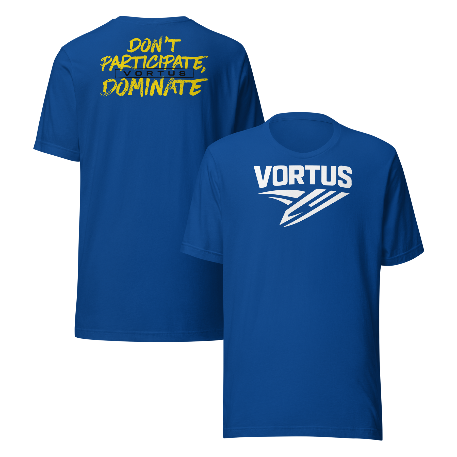 In a world content with just showing up, the Vortus Don't Participate. Dominate shirt is a statement for the relentlessly ambitious. It’s more than apparel; it’s a mindset. For those who demand greatness from themselves and reject mediocrity, this shirt is a daily reminder of your purpose: to outperform, outshine, and dominate every arena you enter.