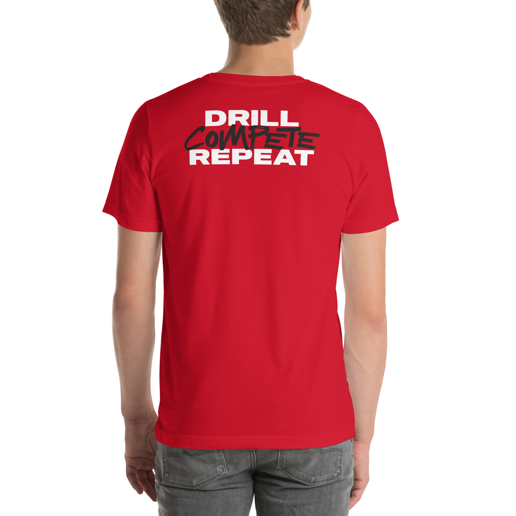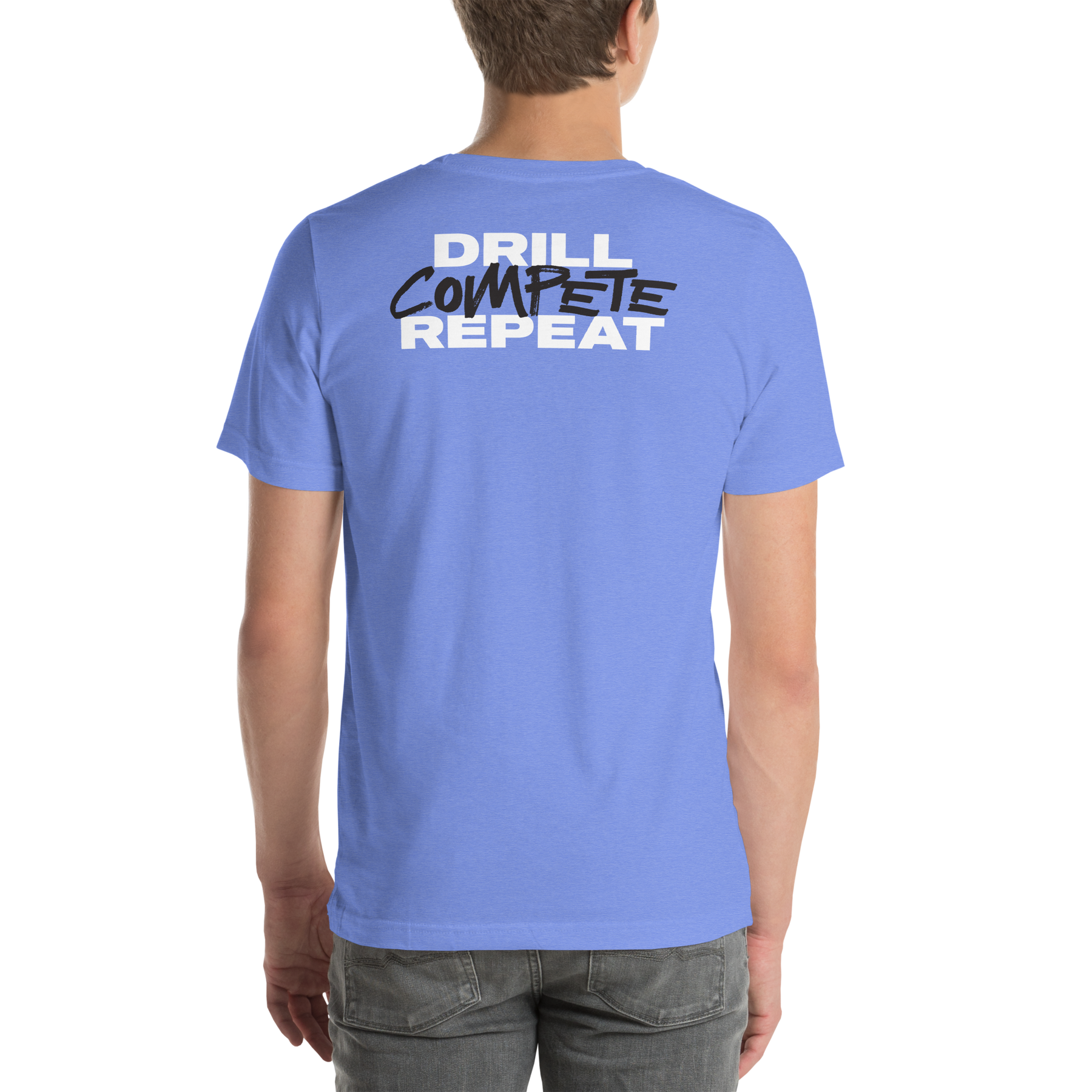 For men who train hard and want to make a statement. The Vortus Drill. Compete. Repeat. men’s Shirt pairs a bold message with a soft, performance-oriented cut—made to move with you during training, warm-ups, meetups, or everyday life.