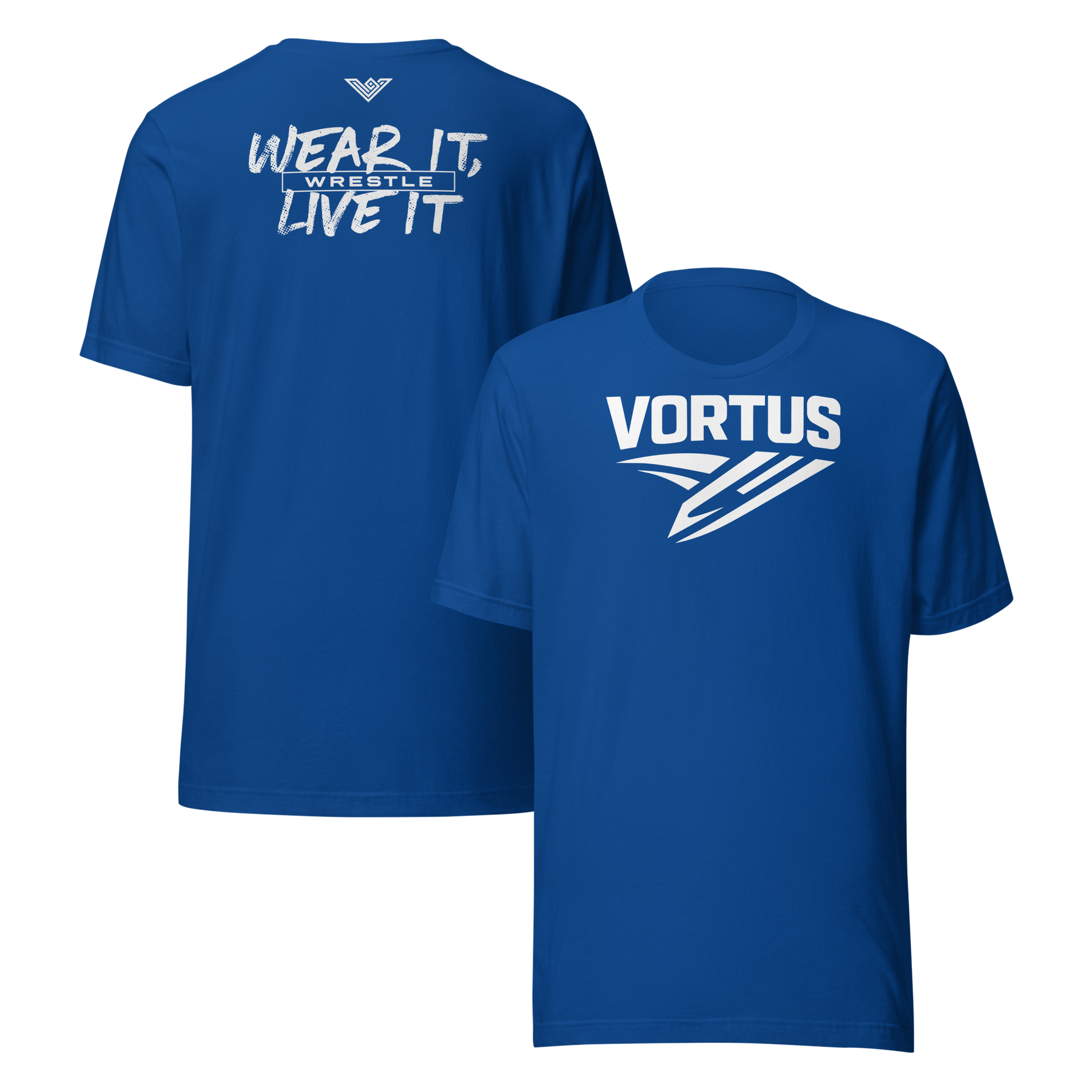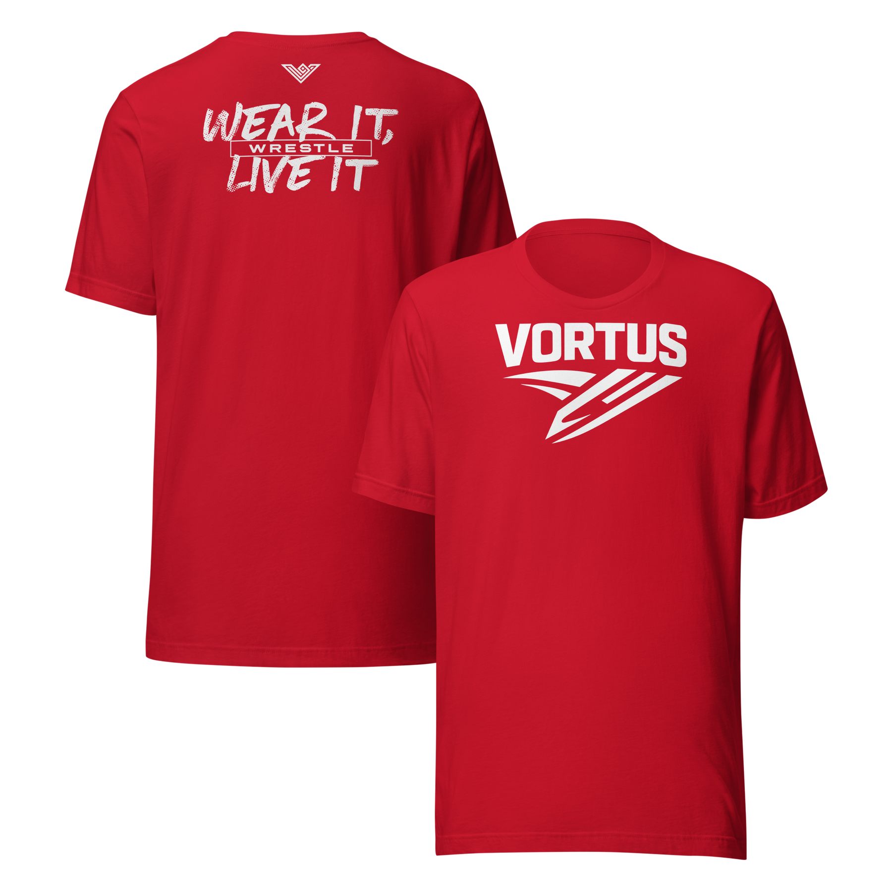 From your toughest workouts to your most relaxed weekends, the Vortus Wear It, Live It Wrestle Shirt is designed to move with you. Made with soft, lightweight fabric and a non-restrictive cut, it offers all-day comfort and superior freedom of movement. A bold graphic on the front makes a confident statement, while the Vortus -Wear It, Live It- slogan on the back reminds you to embrace every moment and live the wrestling lifestyle to the fullest.